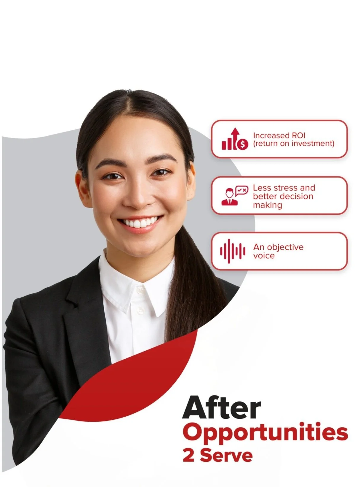 After Opportunities 2 Serve receives your request to schedule a call and reviews your inquiry message, we get right to work. The more information you provide us upon booking, the better opportunity we have to make sure we have the best people on the call to serve you. Opportunities 2 Serve has more than 50 consultants and advisors on its roster with vast levels of experience and knowledge. We also have more than 100 validated and vetted businesses inside of our Partner Network that allow us to make seamless referrals to service providers that can save your company money and help you resolve your needs in the shortest amount of time.
